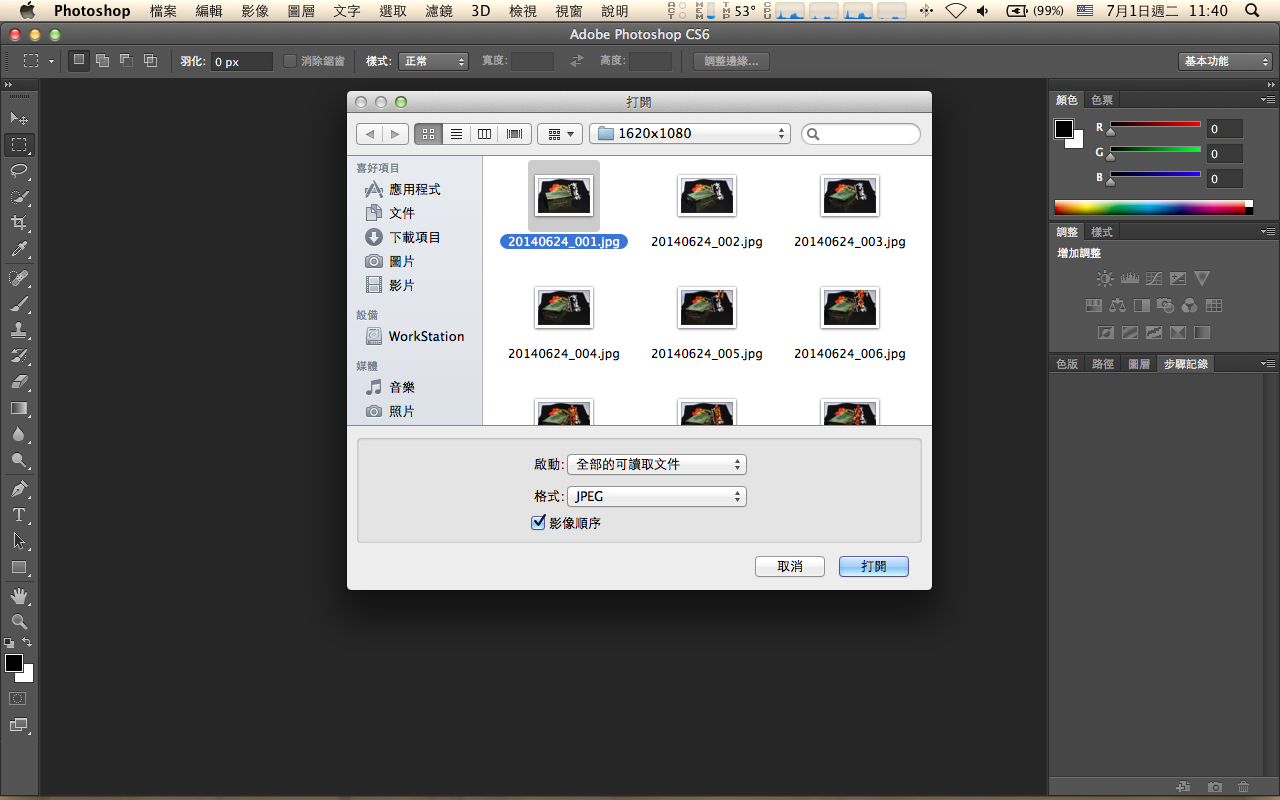 在資料夾中,選取第一張圖片,再勾選下方的「影像順序」,接著按開啟舊檔。
